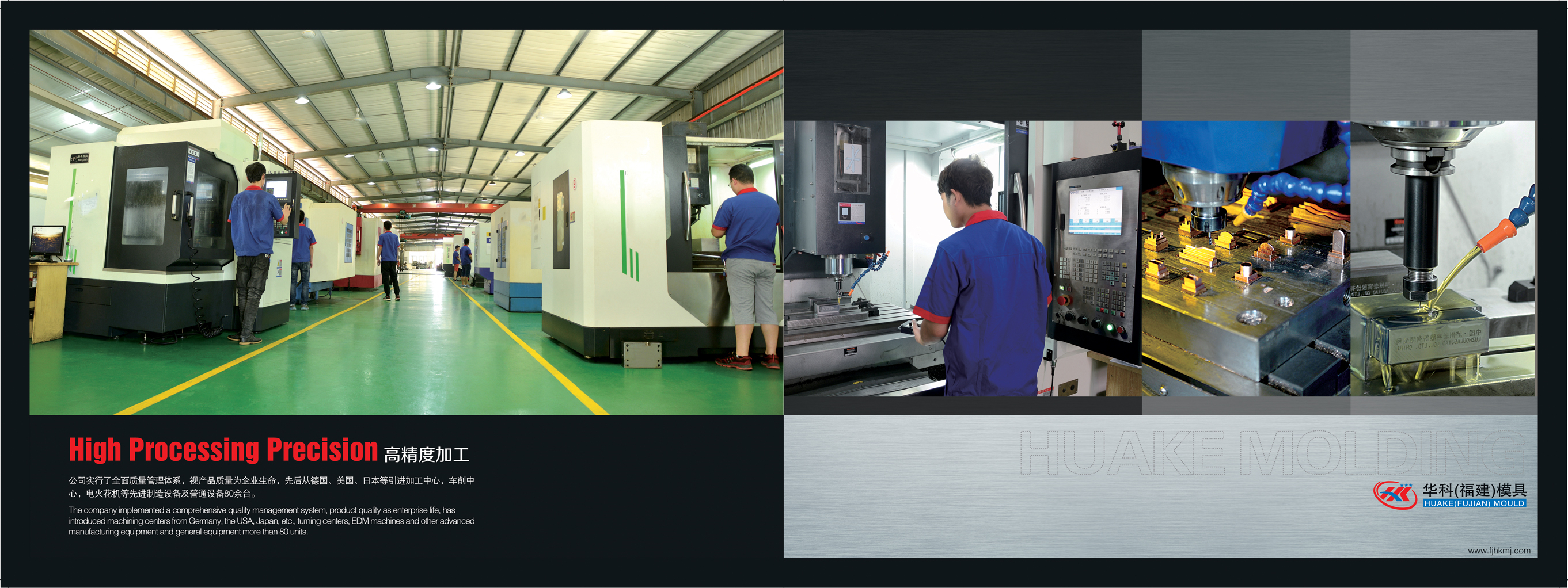 福建華科位于福建省泉州市南安官橋前梧工業區,泉州華科位于福建省泉州市石獅市永寧鎮塔石東路135號。自有廠區面積2萬平方米,公司現有研發設計人員30余人,鉗工、機加工200余人,企業自創辦以來秉持"嚴管理、重質量、重信譽、優服務"的宗旨和"天天改善,年年進步"的企業文化,取得了長遠的發展。本公司精密設備有銑床20臺,磨床30臺,線割35臺,CNC45臺,火花機20臺,三次元,二次元檢測設備各1臺,深孔鉆5臺,注塑機35臺及相關輔助設備。經過多年的發展積累,公司的核心客戶隊伍較為穩定,客戶群也在不斷增大,與國內外眾多品牌企業有著緊密良好的合作關系,并且在動力電池模具領域內打造了華科品牌。